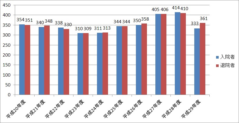 Ⅰ 入退院統計 1)入退院者数 2)入院者の状況(延べ人数) ①診断名別割合変遷 ②年代別 ③居住地別 3)退院患者の状況 4)診断別・入院期間別在院…