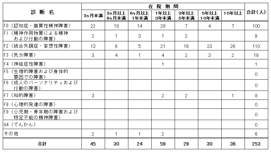 4)診断別・入院期間別在院患者数 (2022年3月31日現在)